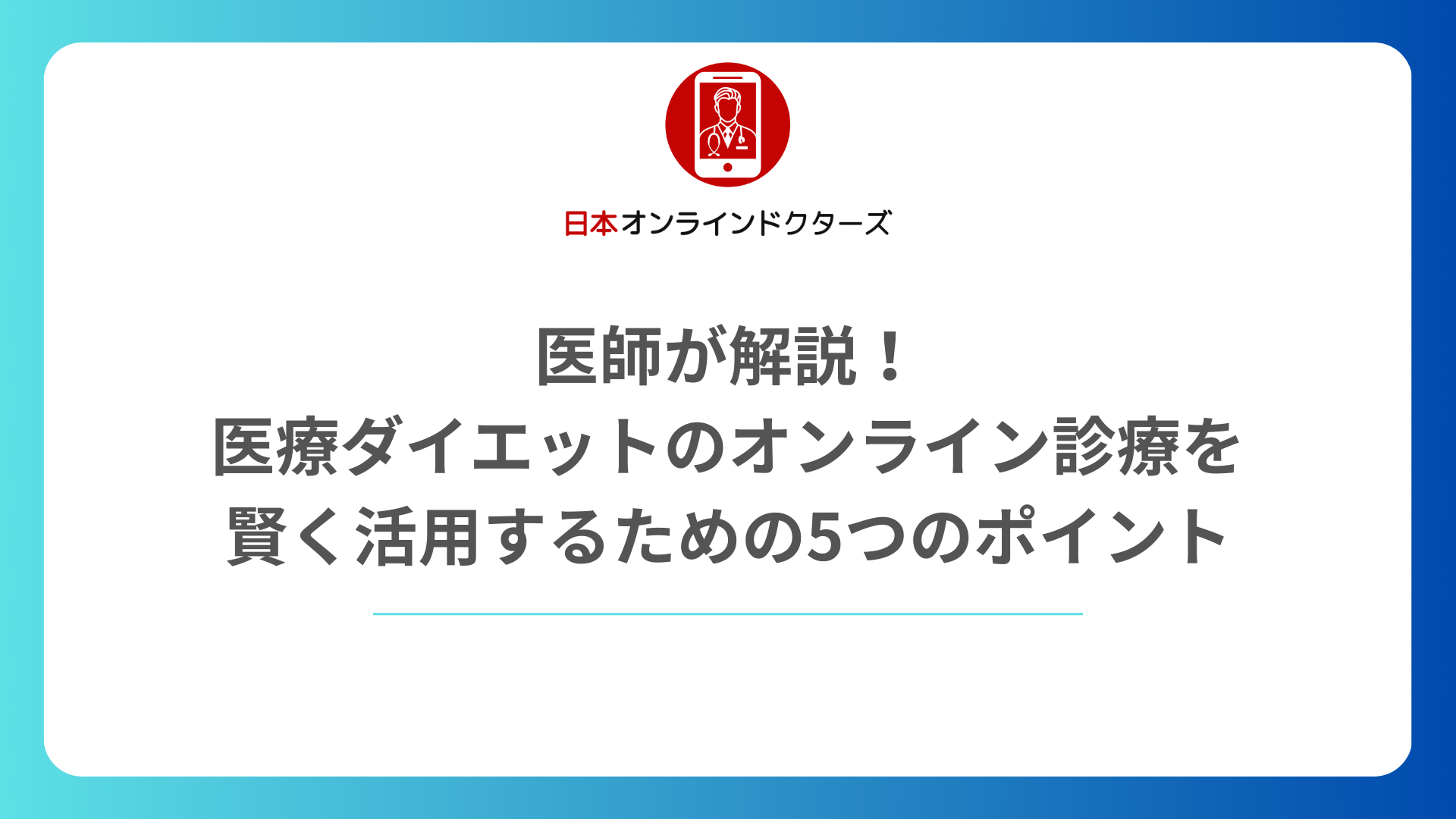 医師が解説!医療ダイエットのオンライン診療を賢く活用するための5つのポイント